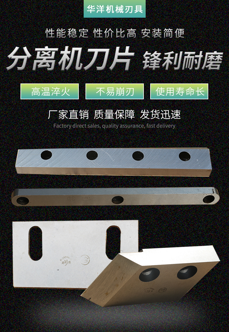 HY系列分離機刀片選用9CrSi、D2、SKD-11、SKH-51、H13等材質(zhì),采用CNC數(shù)控加工工藝,并進行熱處理。